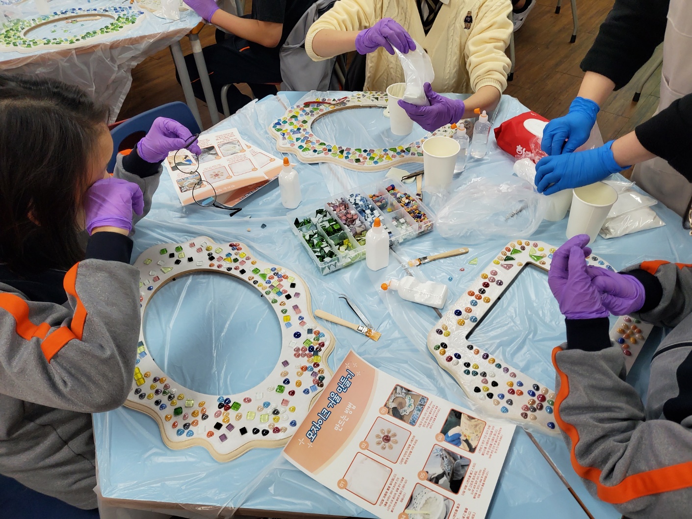 스테인드글라스 공예 체험으로 인테리어 거울을 만들었습니다.
